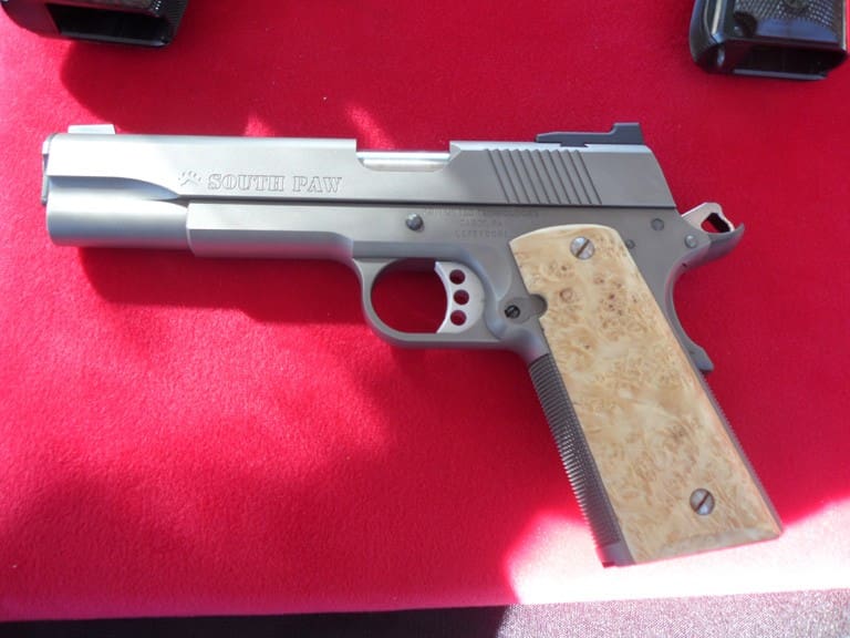 As you are no doubt already aware, a substantial number of companies debuted new weapons this year at SHOT Show. Literally dozens, from the big names like Smith & Wesson, ArmaLite and Benelli to smaller domestic companies to those not as widely known or at least widely distributed here in the US (Caracal, Akkar). One of the pistols I took a look at was a 1911 frame built from the ground up by Cabot Guns of Pennsylvania for left-handed shooters. It’s the only true left-hand pistol on the market right now that I’m aware of. No doubt one of you Soldier Systems readers will have more to offer on the matter.