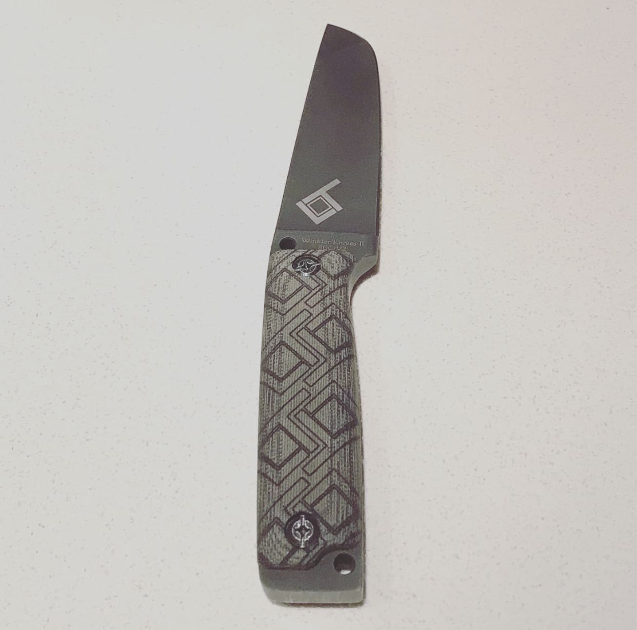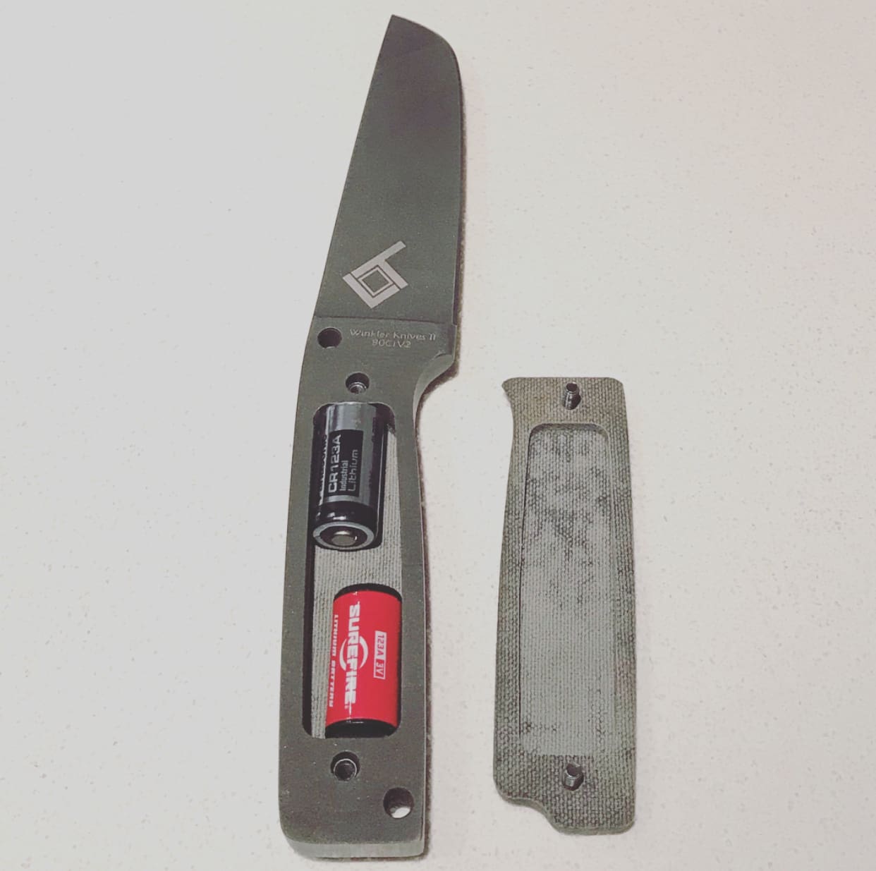 This knife was made of carbon steel and is not stainless with a Caswell treatment that helps to impede rusting, while creating a dark, no-glare finish. The textured Micarta grips are removal, concealing a surprisingly generous storage compartment within the tang. This knife is the first product they offer bearing their new logo, adding a more unique element to this Limited Edition piece. Again, this is a very limited production with only 25 knives available per batch.