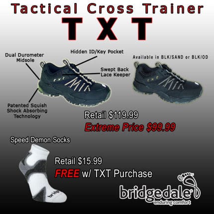 Extreme Outfitters, Garmont NA, and Bridgedale have put together a special PACKAGE/PROMO deal introduce the Garmont TXT. In addition to a pair of TXT shoes, you will receive a pair of Bridgedale Speed Demon socks FREE. This package is limited to while supplies last, so don’t miss out.