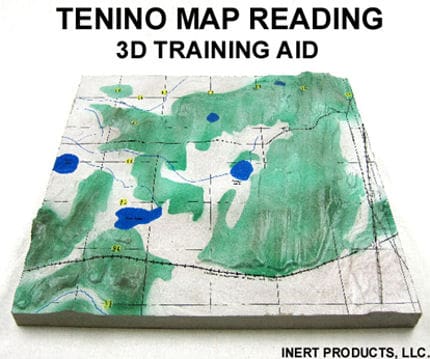 The map is reproduced including all marking such as gridlines, but terrain features are “brought to life” and rendered in full 3D. This gives the use a real appreciation for contour lines found on a flat map. Check out the example below of the infamous “Tenino” map used for basic map reading training throughout the Army.