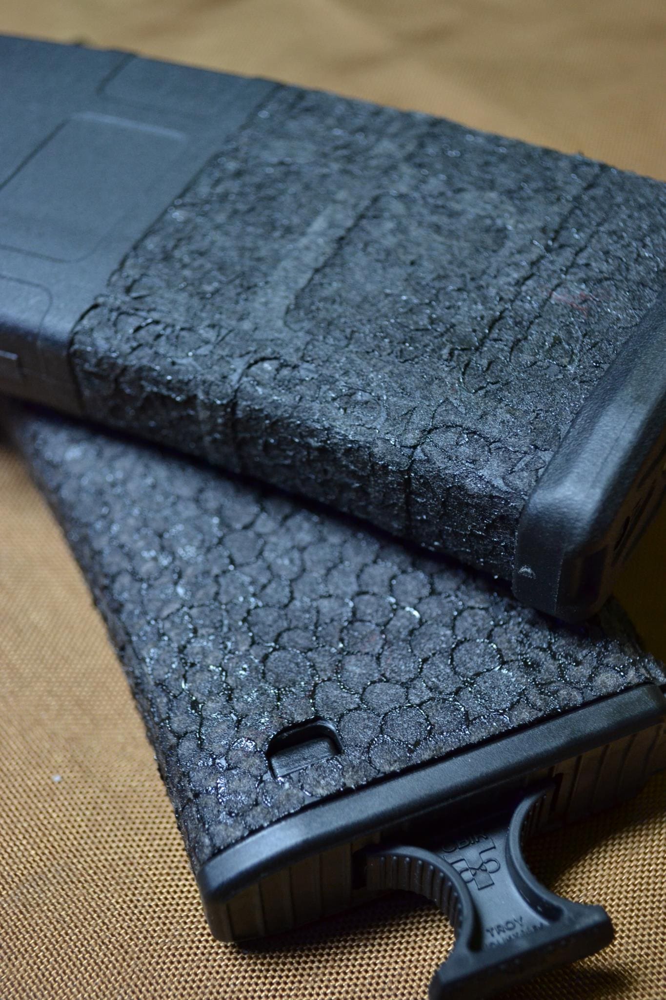 You have read about Warrior Grips LLC before. Now this small Arkansas-based company is doing custom work on rifle magazines, adding texture mods to them. They’re still testing and evaluating them, so it may be just a little bit yet before they can be purchased in any large quantities, but you should definitely watch for them to become commercially available.