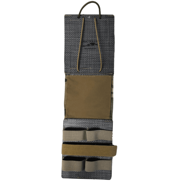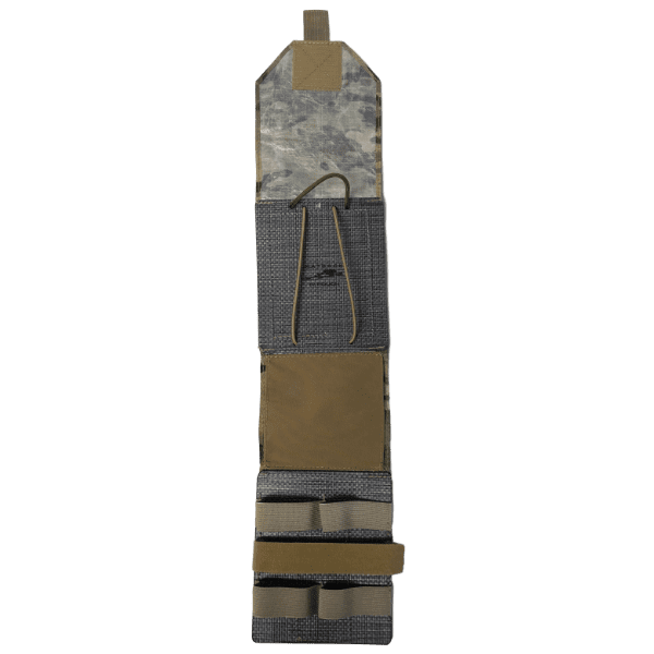 Hoist strapping is 5,500 lbs Tensile strength Kevlar webbing with Kevlar stitching and an integrated chest harness directly attached to both horizontal and vertical hoist straps. There are 4 front drag straps that can create 2 x 10 ft loops for operators to sling and drag forward in a “hands-free” configuration, as well as stabilizing straps in the back for uneven terrain.