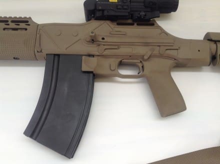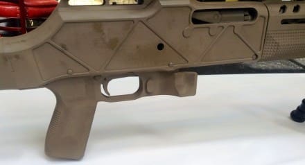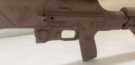 This new variant is still chambered in .30-06 but they are considering other calibers; 7.62 is a natural fit but a few others were mentioned as well. As this is still a developmental platform, almost anything in that class of round is possible, so long as it makes sense. Even with the .30-06 you can see that recoil is quite manageable. I found it similar to a 5.56 rifle. They tell me it’s due to their new buffer. The furniture is all designed and manufactured in house from Selective Laser Sintered (SLA) 3D printed materials. OOW has also integrated Mil Std 1913 rails for sights and accessories.