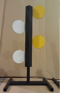 Red Stitch Tactical has a new enhanced rifle “dueling tree”. Similar to the one we reported on before, the “enhanced long range rifle dueling tree” is designed for focused precision rifle fire training and practice at long ranges. The basic platform consists of 4 steel plates (AR500 steel) on a 3/4″ steel bar, with a 3/8″ angle iron shield in place to deflect errant shots to the side so you don’t eat it up on a bad day.