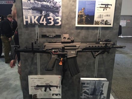 The HK433 is a modular assault rifle in development by H&K, which is currently undergoing evaluation with the Bundeswehr to replace the G36 as Germany’s new service rifle. This particular model shown at the show was revealed by a rep to be a 4th iteration prototype, and we were told that it’s expected that several more prototype iterations will be made before the design is finalized.