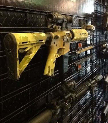 In fairness, I’m guessing I didn’t get as much out of it as some people might have, because I’m not a mutant. I’m right handed. This thing was smooth though, and had a very nice trigger break. The wood used on the grip was their own, which I thought was interesting (meaning it was wood from their own trees from their own property, behind the shop where they’re built). You don’t see that very often. They also take four months to build each gun, which is also not exactly standard. It’s made of 4140 billet steel, designed to exceed National Match accuracy out of the box, with their own walnut as mentioned earlier and also olive wood or box elder. The front sight they use is called the Rozic blind sight, which comes off the front of the breach face. Sights are tritium, white- or gold-dot.