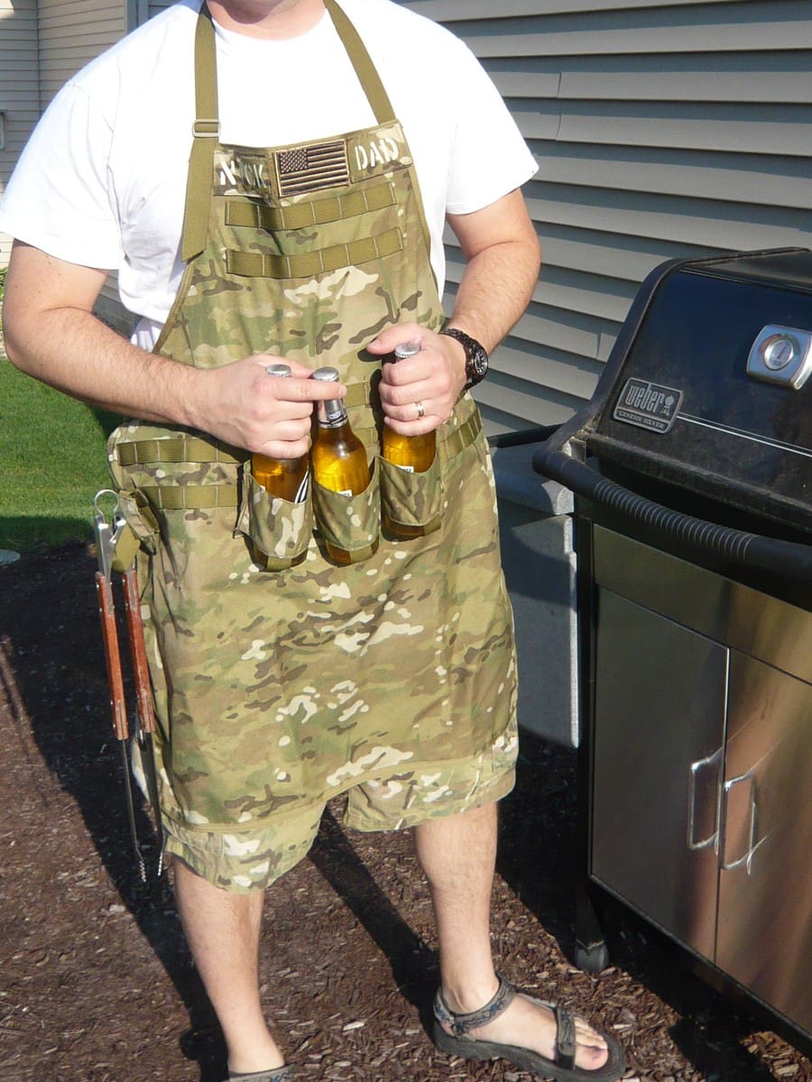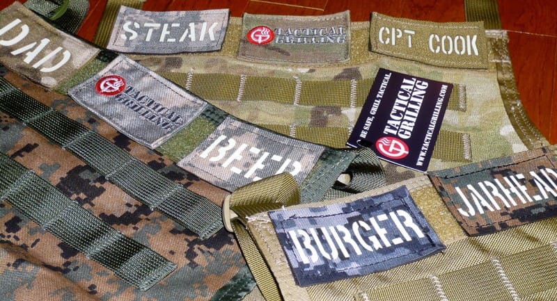 Are you still looking for that perfect Christmas present for the guy who has everything? If you are seeking something practical but with some tactical flair, look no further. What you are after is the offerings of Tactical Grilling. Sure, we’ve written about them in the past but they keep adding colors and accessories making them the coolest lifestyle products we have ever seen. Imagine hosting unit barbecues in style or just enjoying day off with the family. Not only does the apron keep your clothing neat, its MOLLE compatible webbing allows you to accessorize to your heart’s content. There’s even room for your scare badges or Tactical Grilling’s new Custom Laser Cut Tactical Grilling Patches. They’re currently offering them as laser cut Cordura over Glow-In-Dark substrate sandwiched to hook Velcro in any of the colors currently available. You decide what they say. Additionally, they’ve added additional color options, bringing the total offering to five: ACU (UCP), MultiCam, MARPAT, Coyote, and NAVPAT.