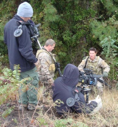While I was there they were filming an intro sequence that will be featured on an episode of “Tactical Impact” focused on Special Forces. As the cast and crews are the same for both shows, segments are shot in overlapping schedules. Very little of the work is conducted indoors so it can lead to some long days in weather extremes from the North Carolina heat to cold rainy days that hover just above freezing. Cold and wet describes my time on set perfectly.