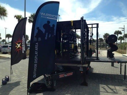 I remember attending a trade show 10 years ago and seeing the TRX which is a compact workout kit many in the military now deploy with for use in areas with no gun facilities Then, last week, I ran across this black 8′ x 8′ x 8′ shipping container at last week’s Emerald Coast Warrior Expo near Hurlburt Field, Florida. It brings deployable fitness to a whole new level.